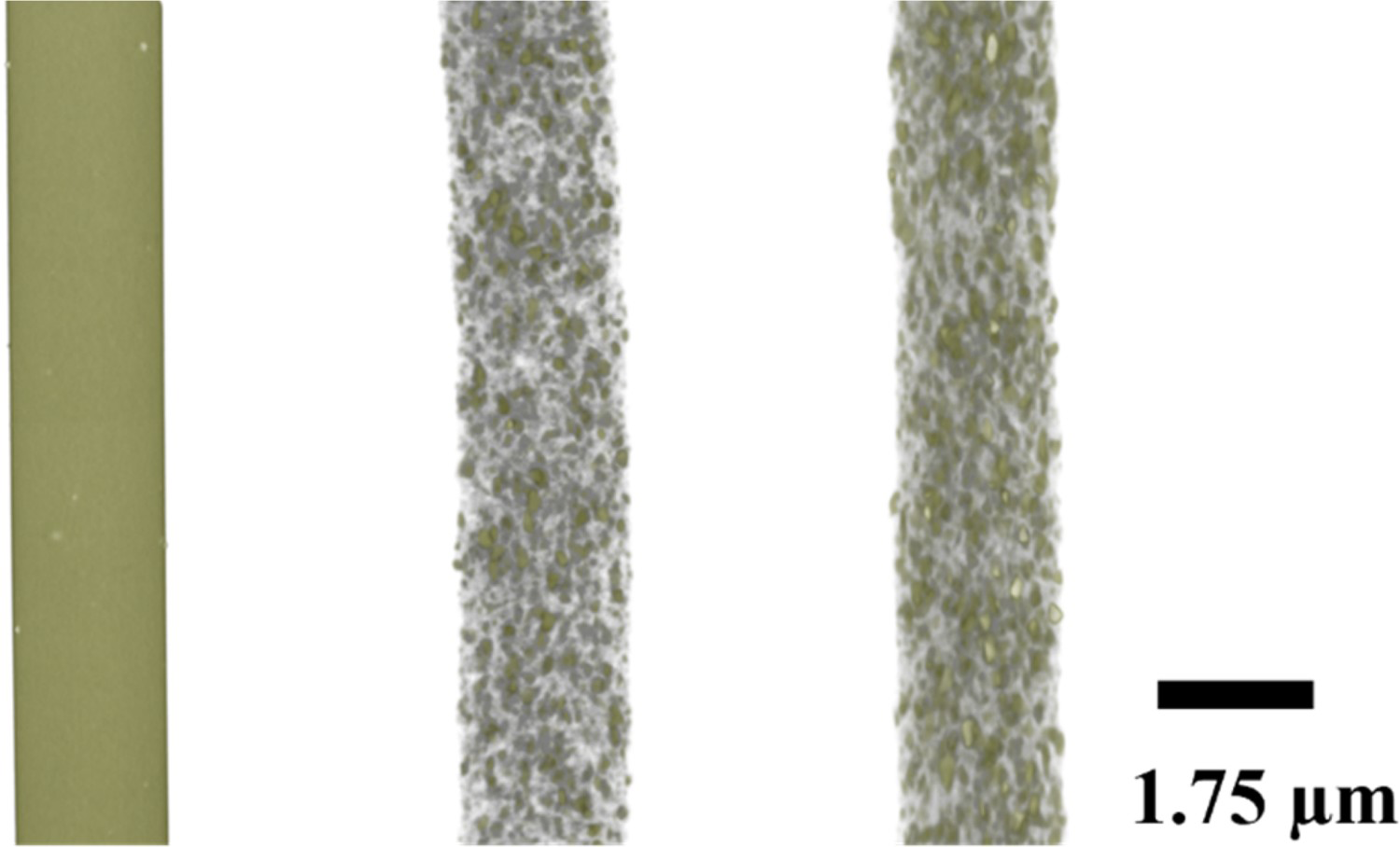 The ZnHA particle distribution in the filaments was examined via µ-CT. It was noticed that the ZnHA particles were homogeneously dispersed in the PEEK matrix. The tiny dots in Figure 2 are ZnHA particles that are dispersed throughout the PEEK matrix. However, for pure PEEK, the surface was smooth which showed the absence of particles, as expected.