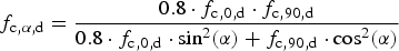 The design rule is, as in Eurocode 5, based on Hankinson (1921), but the design value for compressive stresses parallel to the grain is reduced to 80%. According to Jockwer and Steiger (2009), the reduction takes into account the consequences of inaccuracy in the production of the geometry of the joint.