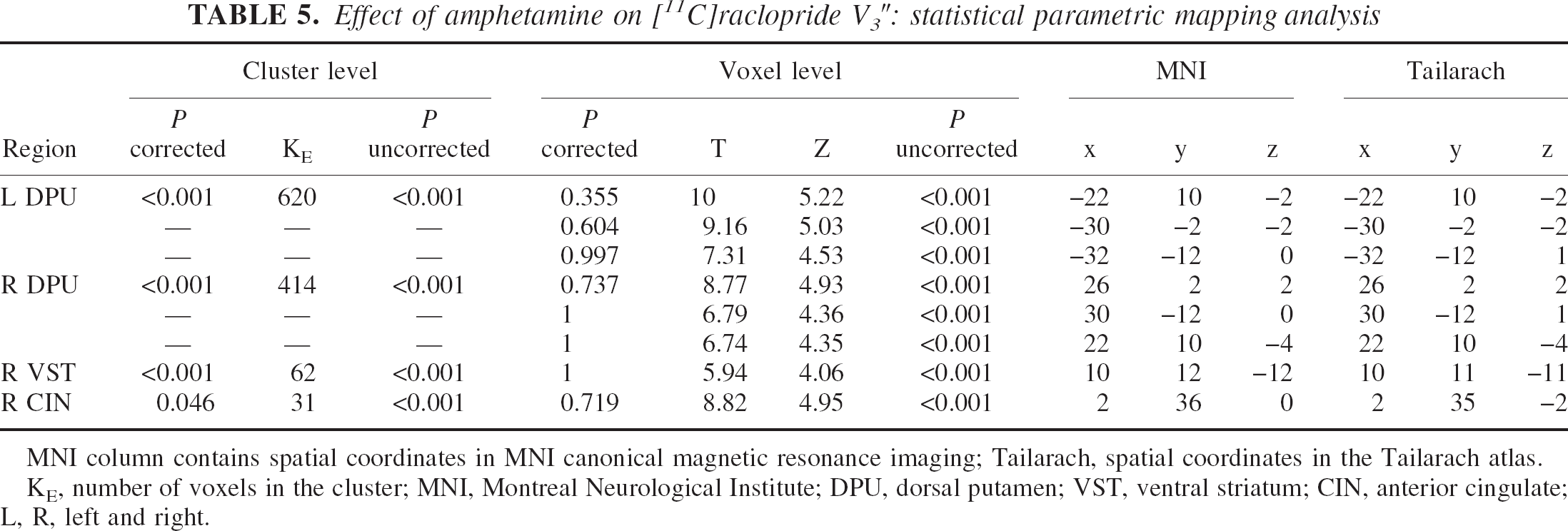 Effect of amphetamine on [11C]raclopride V3″: statistical parametric mapping analysis
