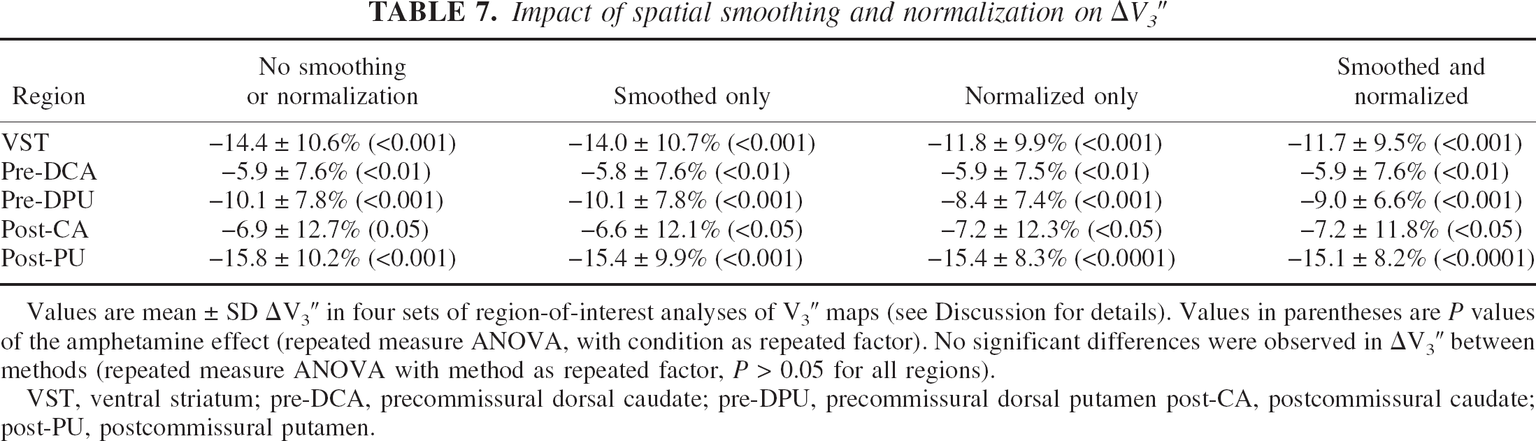Impact of spatial smoothing and normalization on ΔV3″