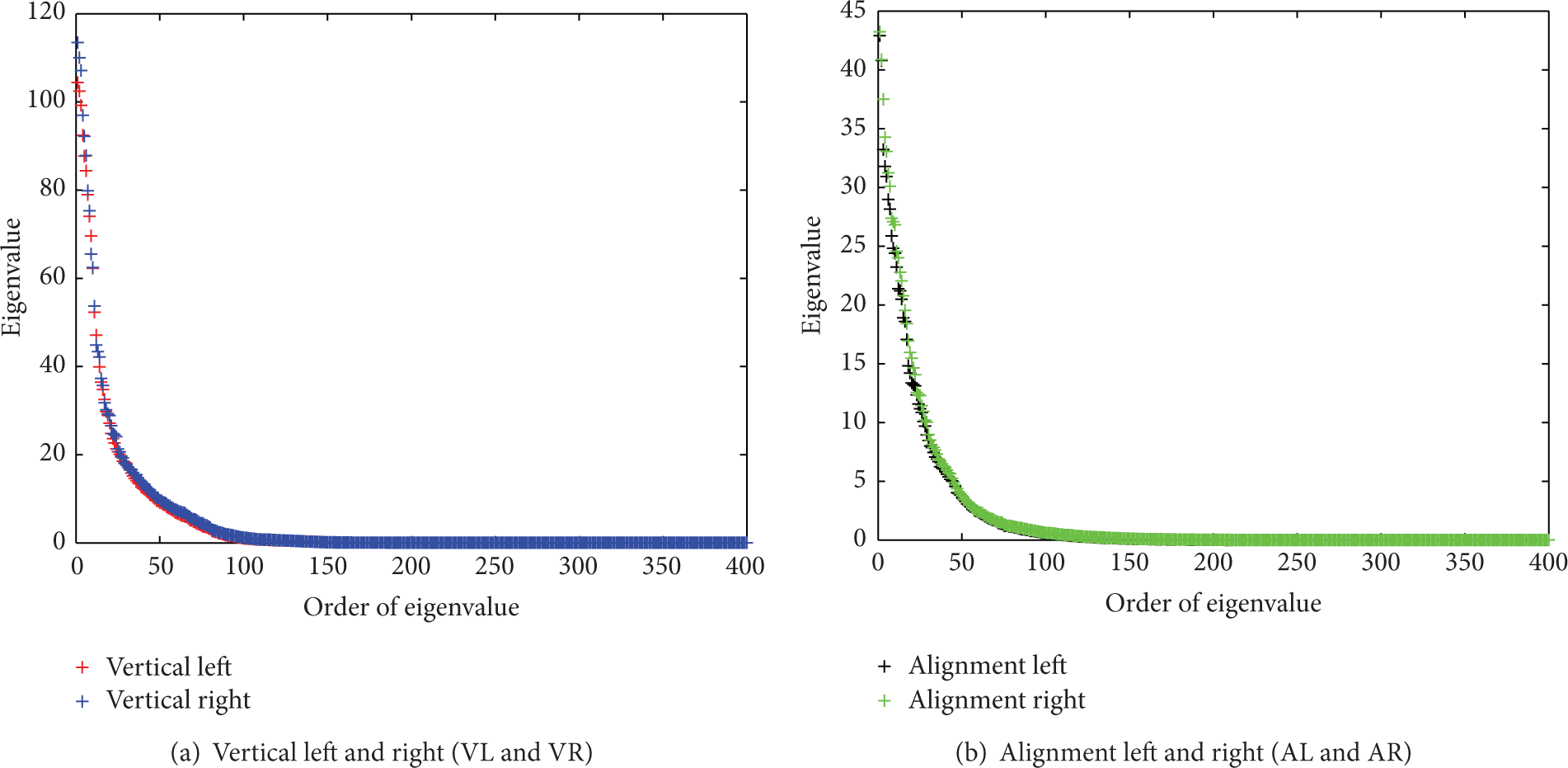 The eigenvalues of the random processes of four irregularities are calculated and shown in Figure 4. In the next step, to determine the value of the truncation parameter