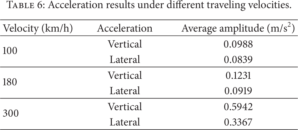 Acceleration results under different traveling velocities.