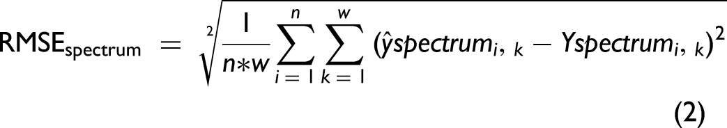 As previously reported, test set prediction evaluation was based on a simulated prediction spectrum reconstructed from predicted labels. The predicted spectrum was then compared to the test spectrum to obtain RMSEspectrum (Eq. 2).
