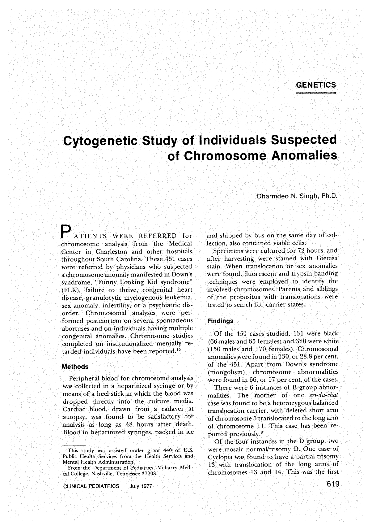 —, Osborne, R.A., Paul, J.R., Catoe , S., Katzberg, A., Hennigar, G.R., Barnett, C.D.: Cytogenetic survey of 504 mentally retarded individuals. J. Ment. Def. Res.18: 293, 1974.