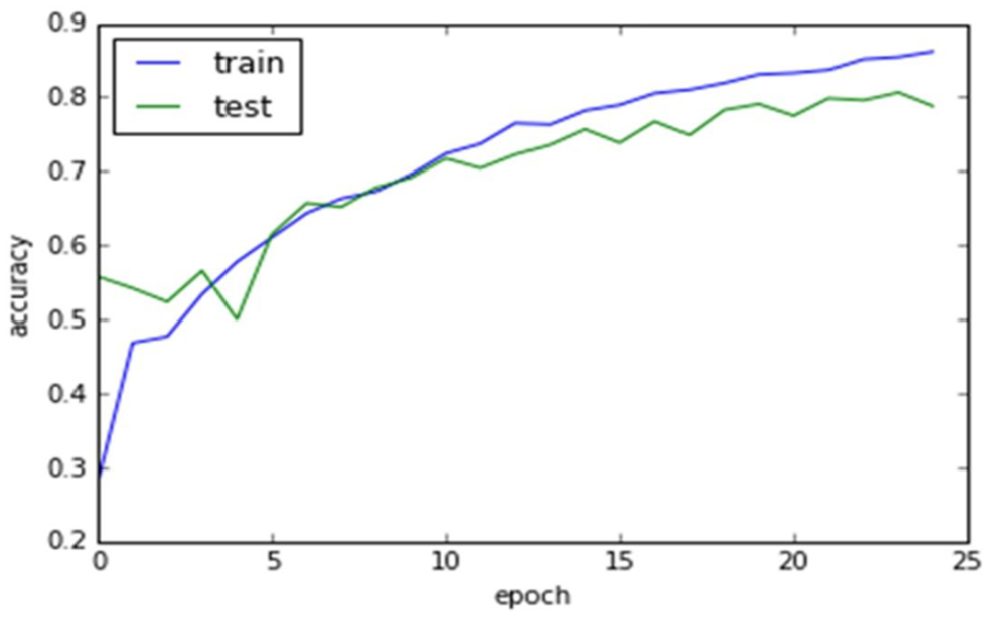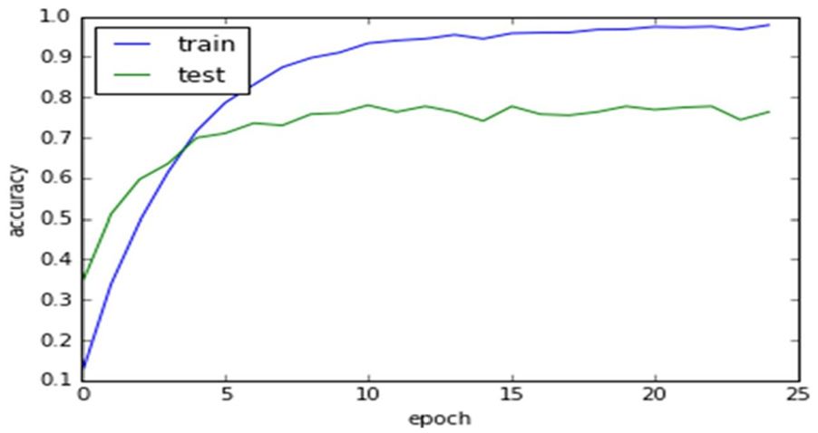 In the proposed research work a five layered CNN model is selected consist of three hidden layers and an input and output layer. Handwritten characters images are provided as an input to the first layer. While the second and fourth layers of the model act as a convolution layer with subsampling layer as an alternator, that accepts the pooled feature map as an input. CNN is an automatic feature extractor these layers automatically extract features from the raw/input images that are more and more invariant to local transformation. A fully connected layer (FCL) is the last layer of the CNN model, in our case, this is the fifth layer. This layer decides the output based on neurons selected. The overall result of the convolution neural network is shown in Figure 17 during its performance checking.