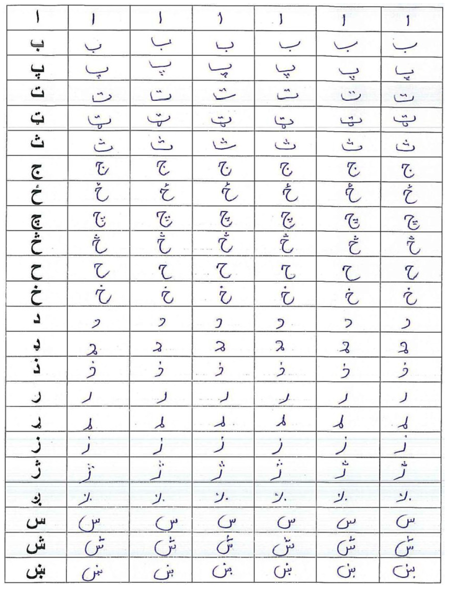 The accumulated handwritten Pashto letter from different people are scanned in order to store it in the computer for further processing and applying machine learning algorithms. Figure 6 depicts the scanned samples for Pashto handwritten alphabets that were stored in the computer.