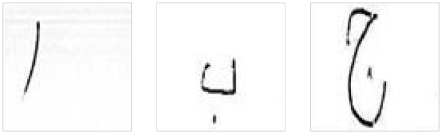 Noise can be produced due to the imperfect segmentation. So in this step, the noise in the shape of cutting edges and holes is removed from the images. Furthermore, each character or alphabet is positioned centralized to make each image equally a fair candidate for classifier as well as to eliminate image classification affected by the variations of the position in the images which is shown in Figure 10.