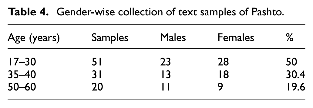 Gender-wise collection of text samples of Pashto.