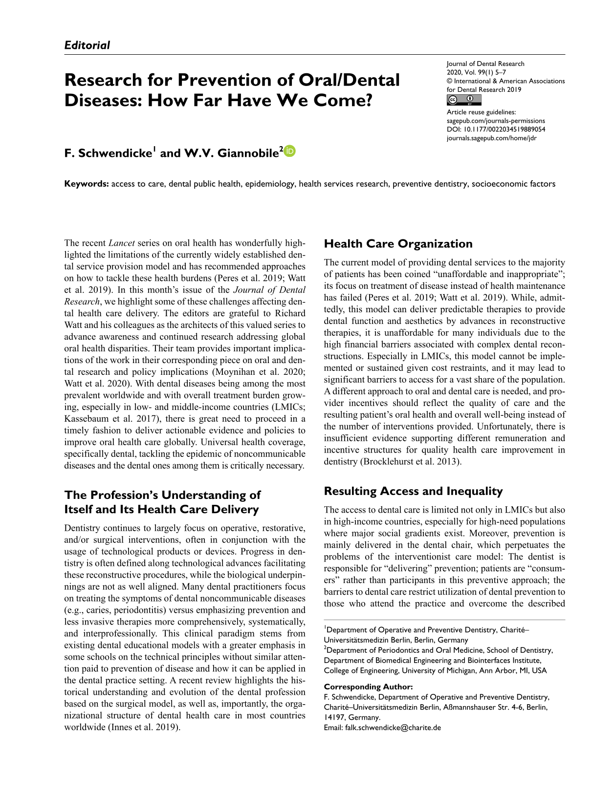 The current model of dental care and the conventional focus of “preventive dentistry” unfortunately target only a fraction of the structural and procedural causes leading to these oral health inequalities (Figure). Current dental prevention is delivered largely to those who may not necessarily need it the most. Widespread dental prevention efforts need to examine the myriad causes of the lack of penetration of prevention to broad patient populations where access to dental care is limited. One area of focus on the risk factors that dentistry shares with other noncommunicable diseases, such as free sugar, tobacco, and alcohol, should be developed, tested, and supported by dental research and dentists as well as dental organizations worldwide (Watt and Sheiham 2012; Moynihan et al. 2020). Dentistry can advocate oral health–friendly regulation and legislation, with the underlying sociobehavioral component being accounted for in current oral health care delivery systems.