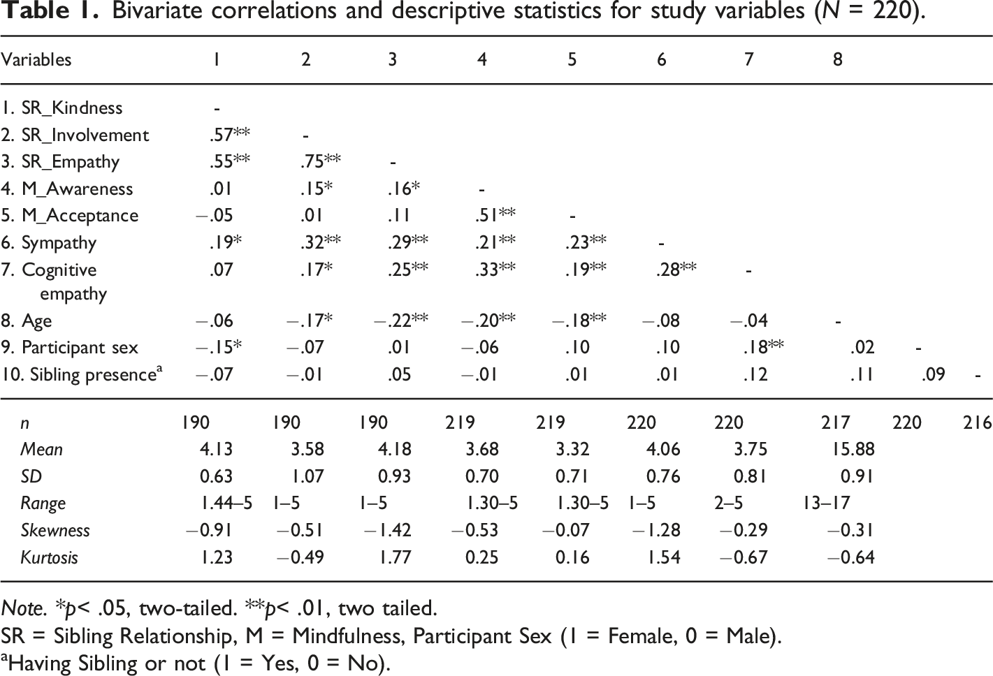 Indirect process: Mindfulness, cognitive empathy, sympathy, and sibling relationships