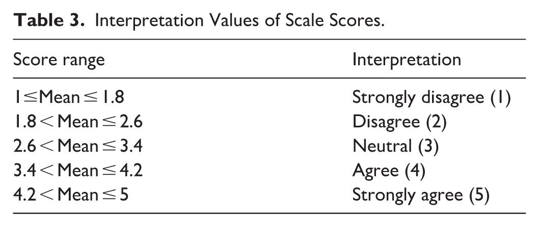 Interpretation Values of Scale Scores.