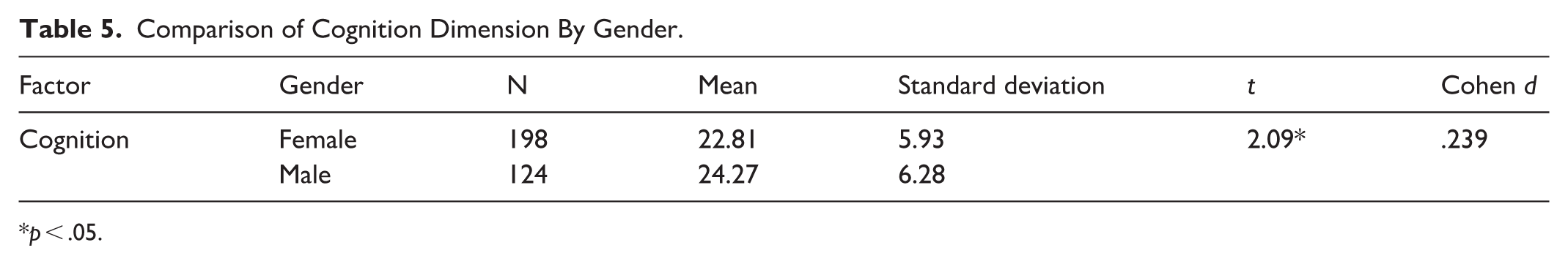 Comparison of Cognition Dimension By Gender.