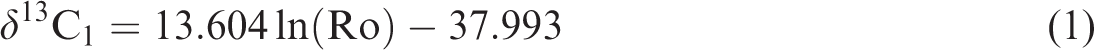Bao et al. (2007) reported the following relationship between methane carbon isotope values and the maturity (Ro) of coal-derived gas in the Kuqa Depression