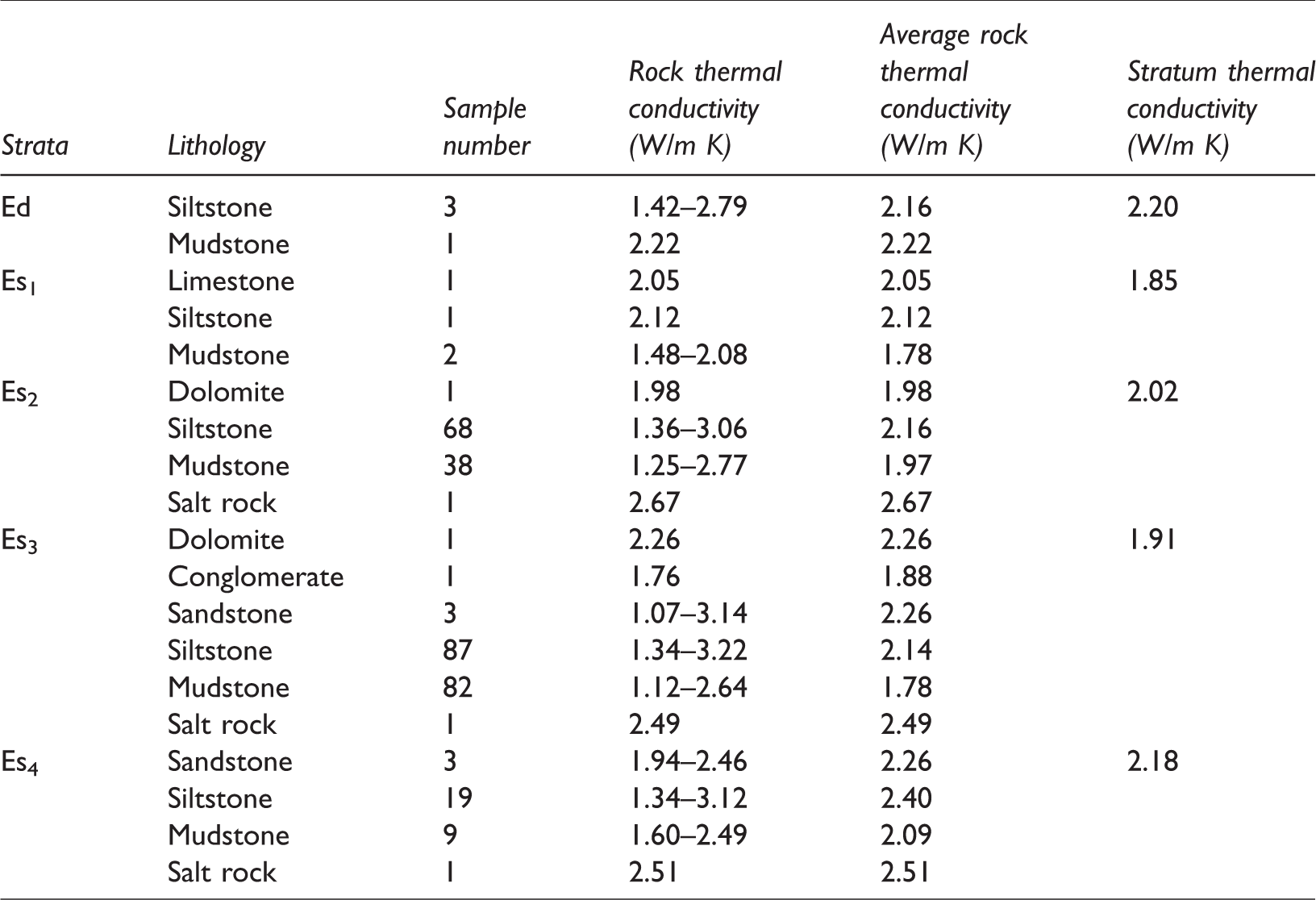 Rock thermal conductivity for strata in the Dongpu Depression (Zuo et al., 2014).
