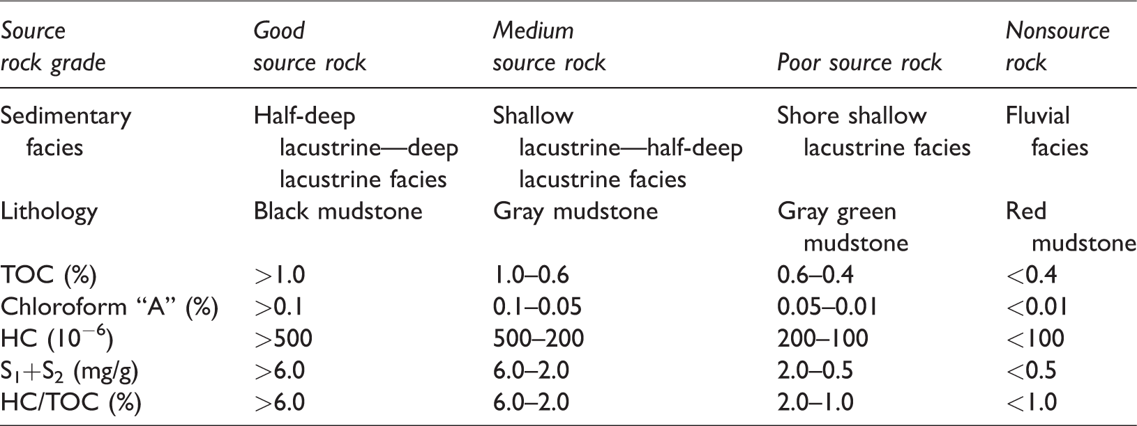 Evaluation criteria of terrestrial source rocks (Huang et al., 1984).