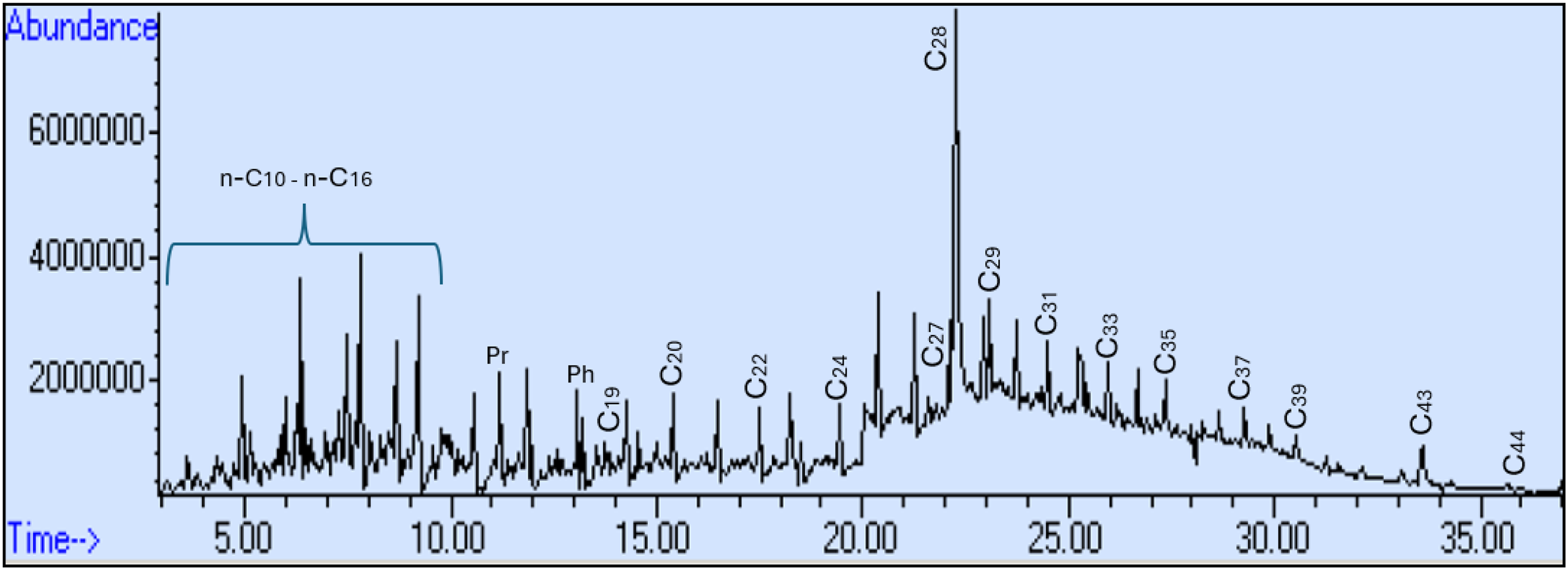 The n-alkane profile of the organic-rich shale consists of low molecular weight <