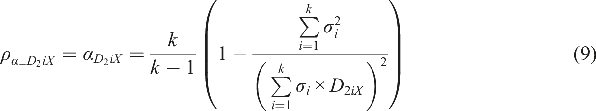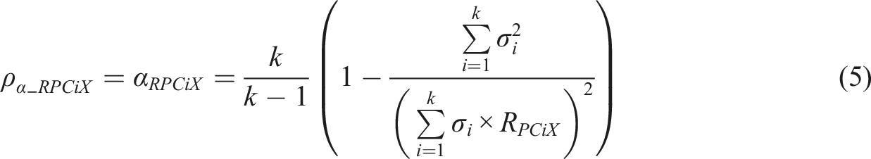 If we apply equation (10) to estimators (11) to (14), we get ACERs based on RAC. In the extreme cases where all items can discriminate the test takers in a deterministic manner, that is, in the case of RACi = RACj = 1, the ACERs based on the forms of theta (equation (12)) and omega (equation (13)) would lead to perfect reliability irrespective of item variances: and . In the case, estimator (11) reaches the value only when all item variances are equal. Then, . Otherwise, the maximum value is . Notably, in the case of deterministic discrimination (in any of the items), a coefficient based on (equation (14)) could not be used due to mathematical reasons (it requires division by zero which is not defined).