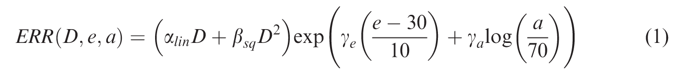 Similar to the method applied in Hafner et al. (2023), a linear-quadratic dose–response model [Eq. (1)] was fitted to the data (Preston et al., 2007):