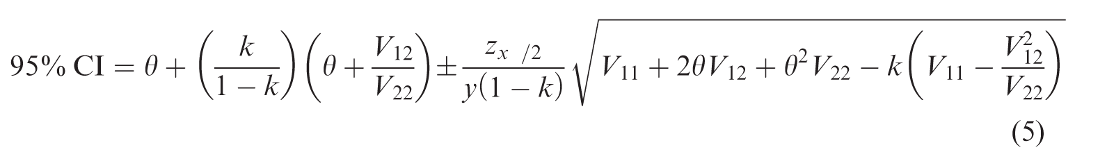 However, this method has some theoretical issues (Stuart and Ord, 1994) because, mathematically, the uncertainty of a ratio of two normal distributions (which is the case for the excess relative risk (ERR) fit parameters) is undefined. Fieller’s method (Fieller, 1940), described more recently by Beyene and Moineddin (2005), provides a novel way of expressing ratios as linear combinations of random variables, and makes the computation of CIs or standard errors of ratios relatively simple, circumventing the theoretical issue mentioned above.