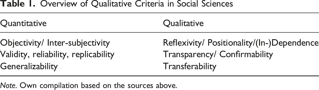 If we want to examine the quality criteria used in qualitative evaluations, we cannot work with the criteria of the positivist approach alone. Criteria exported from quantitative, positivist research are not sufficient to account for most problems in qualitative evaluation research. However, qualitative researchers have proposed alternative criteria (Jacobs et al., 2021, pp. 186–187). One example is “trustworthiness” (Guba & Lincoln, 1989; Lincoln, 2005; Schwartz-Shea & Yanow, 2012, pp. 91–114) of the research findings instead of validity and replicability. The methodological literature offers a number of benchmarks in this regard, some of which are specific to certain approaches (cf. Creswell, 2007, p. 203).
