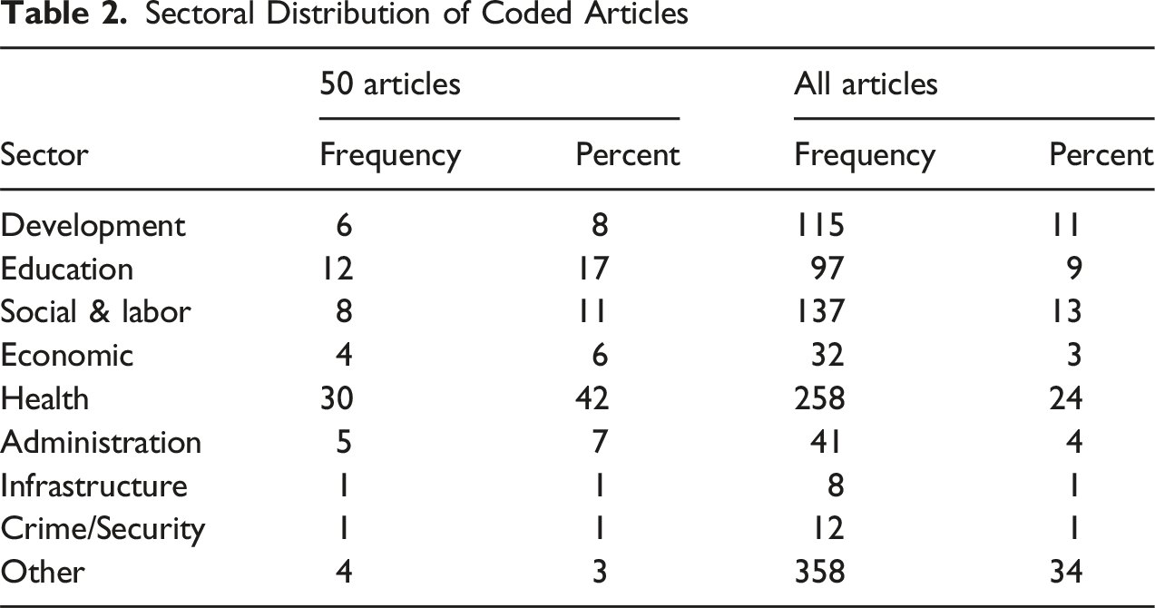 We tested our initial coding scheme with a random sample of 95 papers. We coded these articles according to a simple coding scheme that gives us a first overview of the distribution of the articles in relation to the categories listed in Appendix 2. We coded 54 articles separately, and 41 articles jointly. We then checked the jointly coded articles for inter-coder reliability, which resulted low at 52.2% (Krippendorff, 2011, pp. 211–256). After discussing and correcting the discrepancies in our coding strategies, we decided to adapt our coding strategy and to use a two-stage deliberative coding procedure (e.g. Hak & Bernts, 1996; Saldaña, 2021).