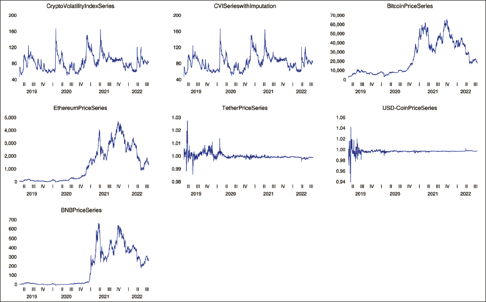 Crypto Volatility Index and Cryptocurrencies’ Price Series.