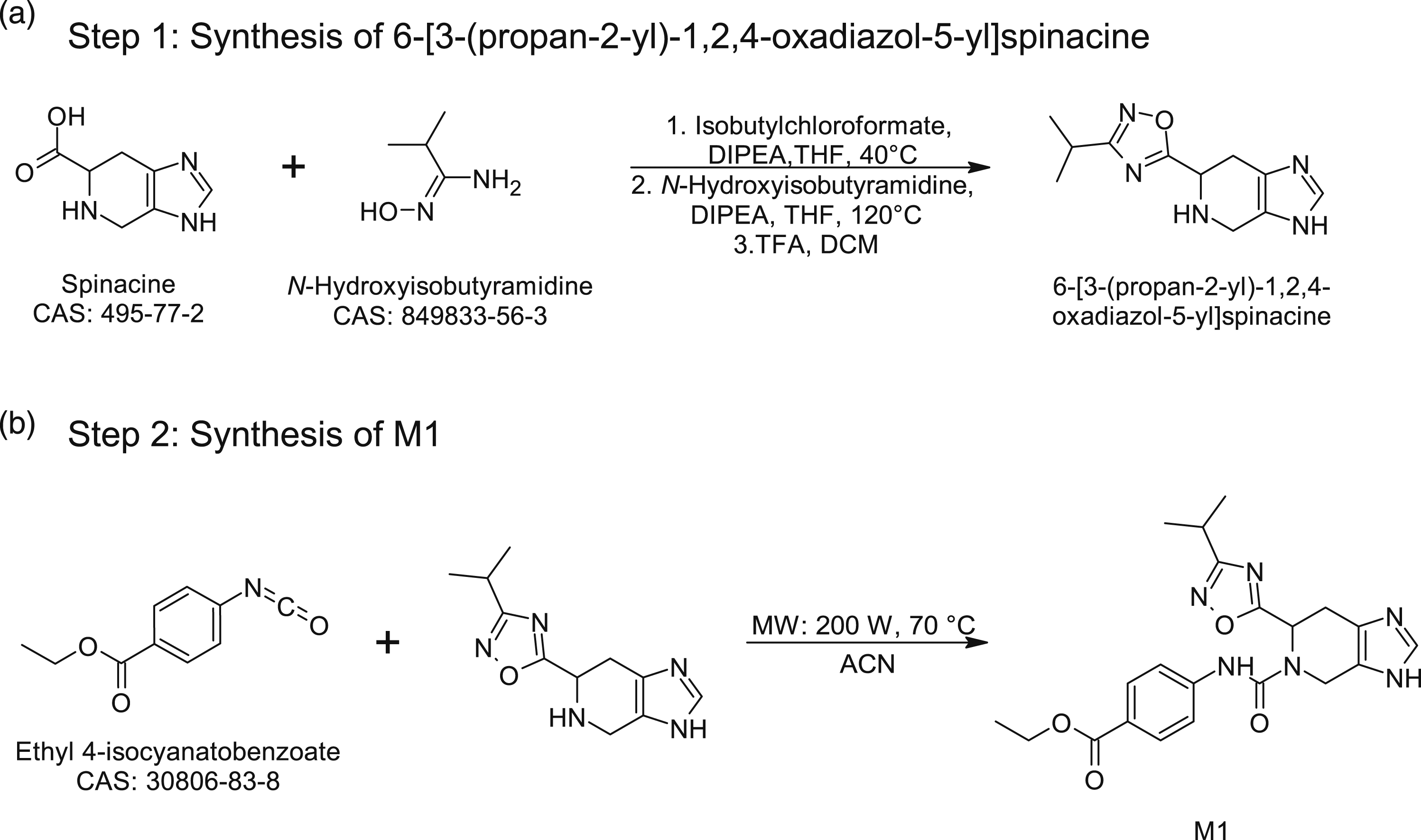 A proof-of-concept attempt was made to predict a scheme of synthesis for M1 and M2 by using a retrograde synthon approach to aid