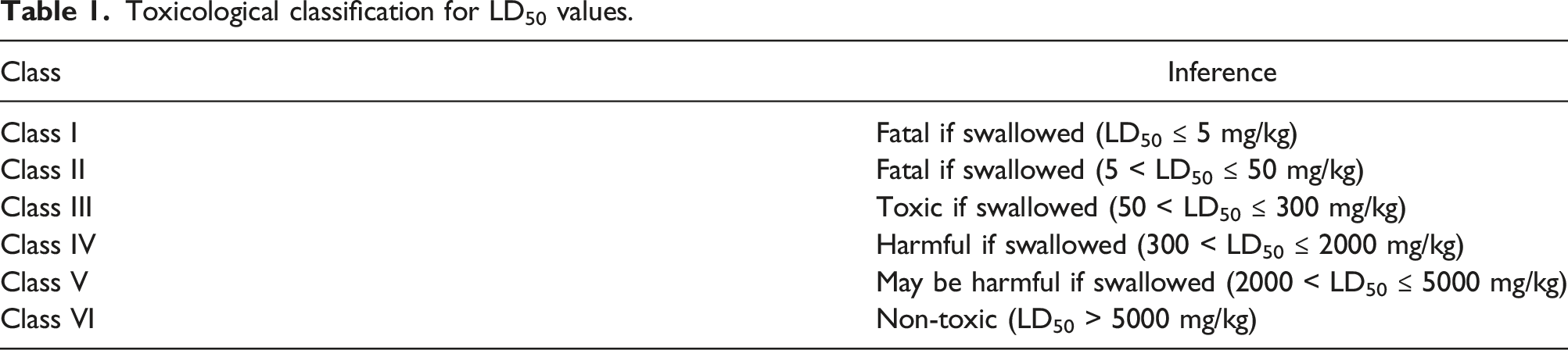 Toxicological classification for LD50 values.
