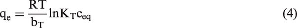 The Temkin isotherm was represented by equation