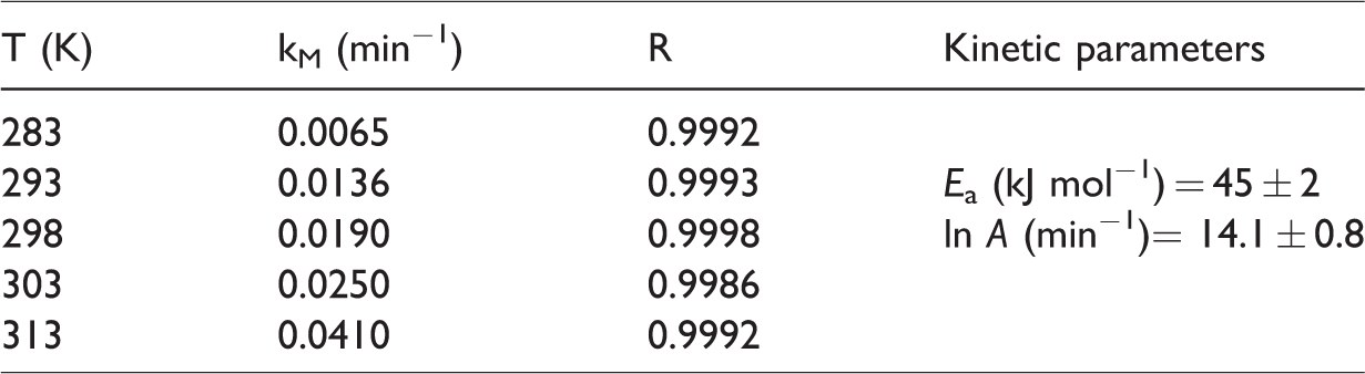 The increase in the values of models’ adsorption rate constant with temperature is in accordance with the Arrhenius equation, which enables to calculate models’ kinetic parameters,