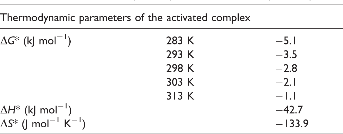 The values for the enthalpy and entropy of activation for the process can be determined from the kinetic data obtained from ln(