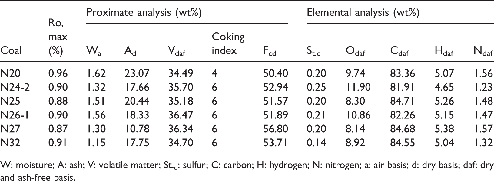 W: moisture; A: ash; V: volatile matter; St.d: sulfur; C: carbon; H: hydrogen; N: nitrogen; a: air basis; d: dry basis; daf: dry and ash-free basis.