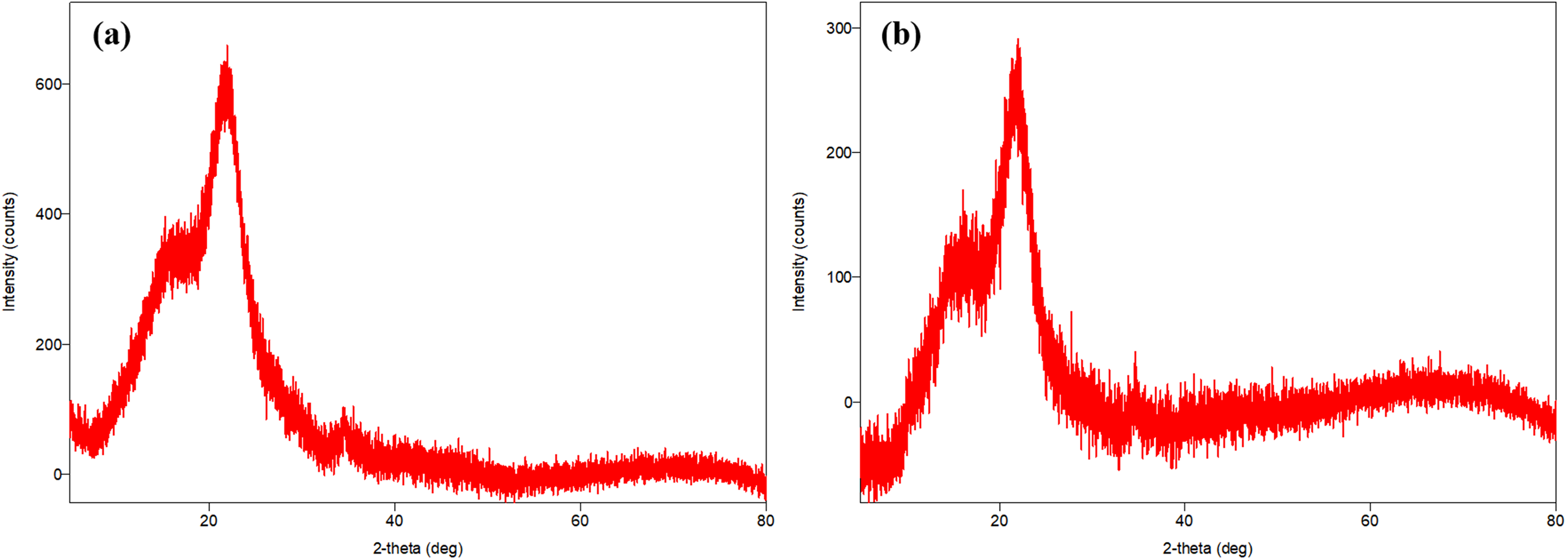 According to the XRD analysis results of WS in Figure 4(a), distinct peaks were observed at 15.74°, 21.68°, and 34.42° angles. Peaks at these angles indicate the presence of amorphous and crystalline structures on the surface of the WS (Grubb and Jelinski, 1997). In the XRD analysis of WS after tylosin adsorption given in Figure 4(b), distinct peaks were observed at similar angles (15.86°, 21.62°, and 34.67°). However, there were significant decreases in the intensities of these peaks. The decrease in peak height, especially at the 34.67° angle, can be explained by the fact that tylosin molecules fill the active sites on the surface of the WS and partially mask the crystal structure. It can be said that adsorption creates disorder in some crystal phases on the surface of the WS.