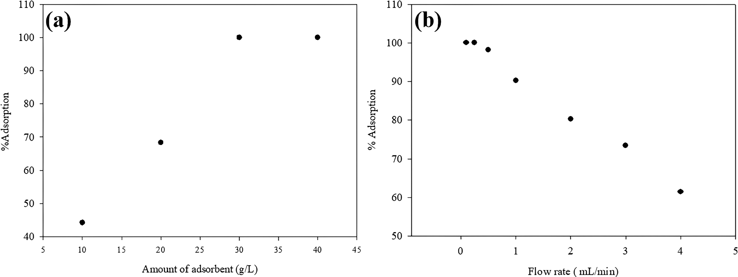 (a) Adsorbent dose (b) flow rate in column system.