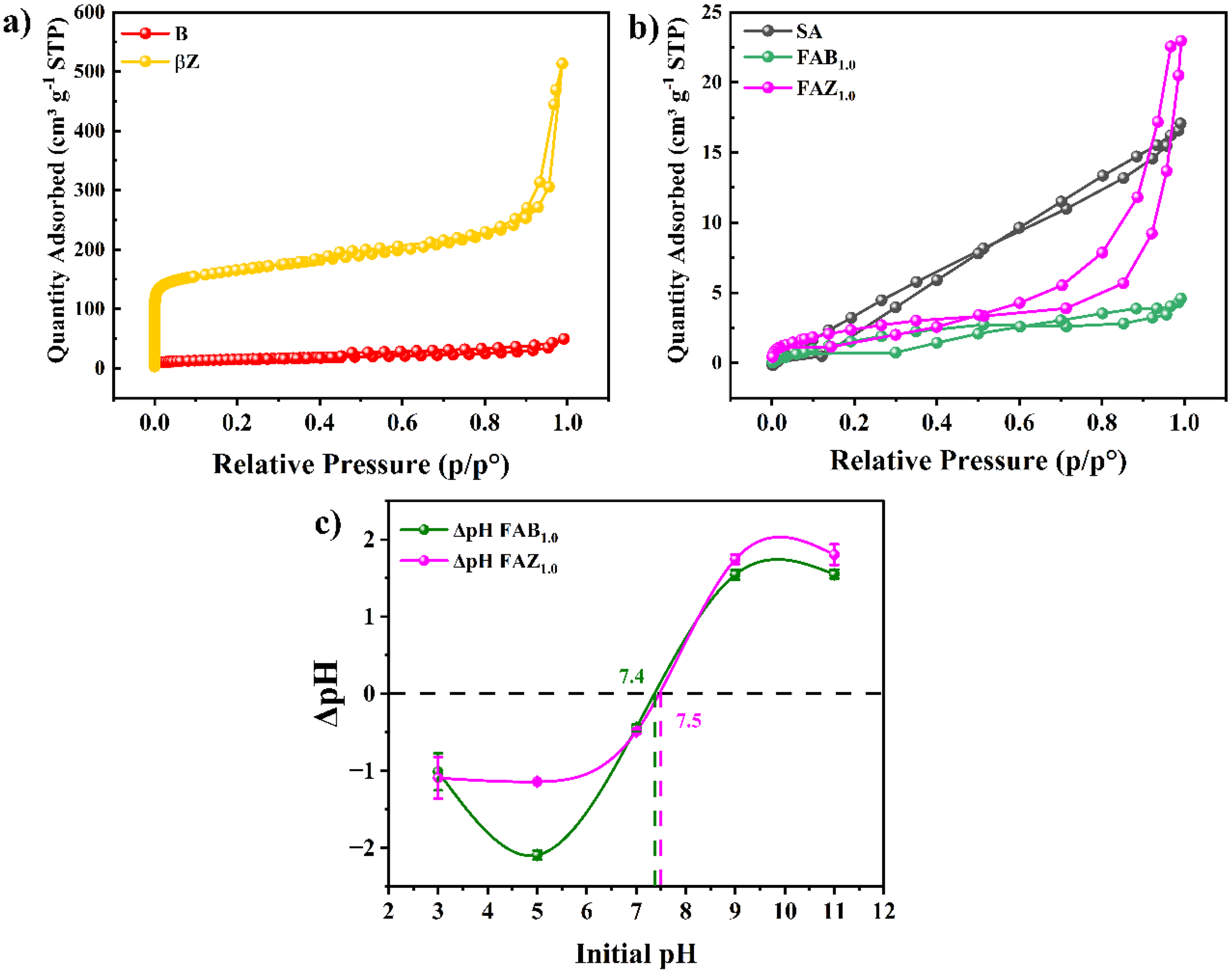 FAZ1.0 displayed a type IV isotherm with a pronounced adsorption increase at high relative pressures (