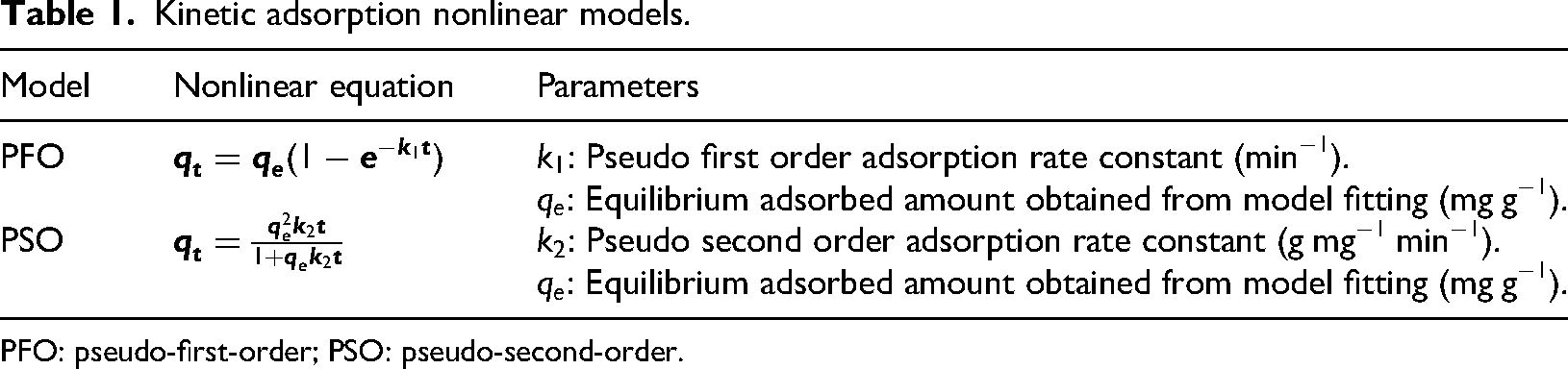 Kinetic adsorption nonlinear models.