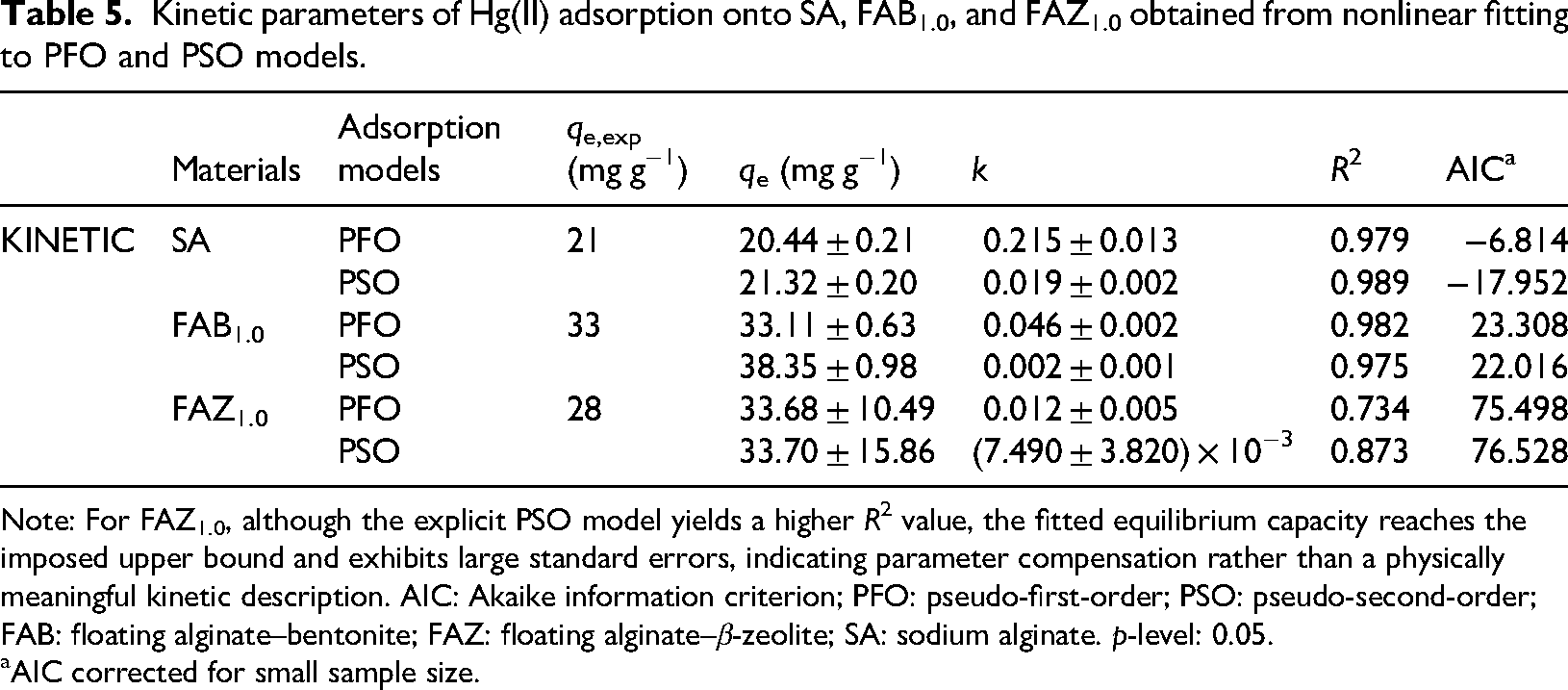 The experimental kinetic data were fitted to pseudo-first-order (PFO) and pseudo-second-order (PSO) kinetic models through nonlinear regression. Model comparison was performed using