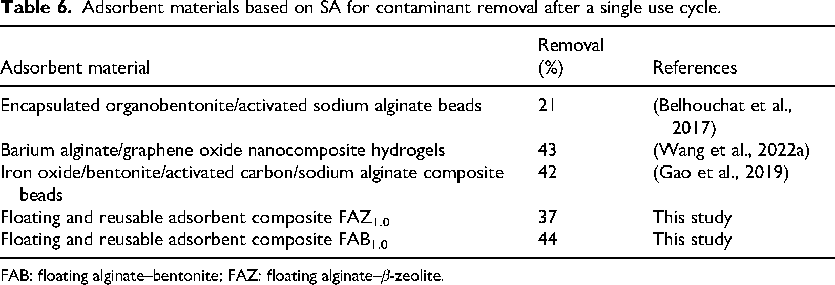 FAB: floating alginate–bentonite; FAZ: floating alginate–