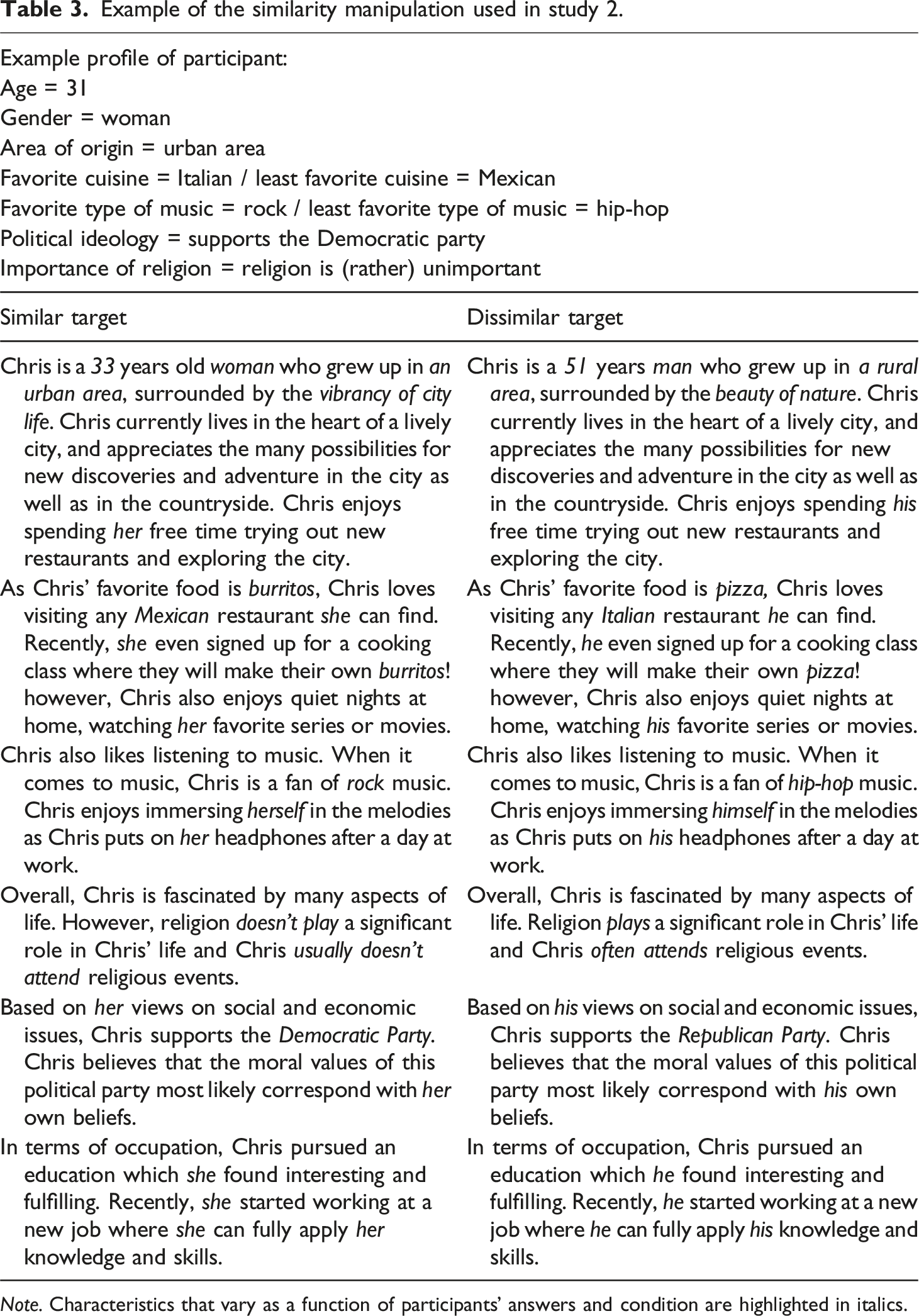 Participants in the similar (compared to the dissimilar) target condition indicated more perceived similarity,