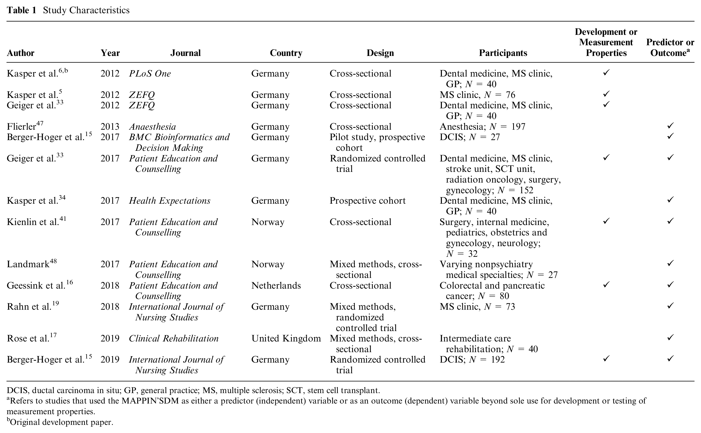 The appropriateness of a measurement instrument for a specific use is a reflection of its development, sensibility, reliability, and validity.7,8 Previous systematic reviews of SDM measurement instruments have not assessed these properties in depth, and thus this crucial set of information is lacking in the literature for specific measurement instruments.2,4 Regardless of the specific conceptual model employed by clinicians and researchers, in order to accurately measure the construct of interest, sound measurement properties of the instrument of interest must be ensured. This review therefore sought to critically appraise the development and measurement properties of the MAPPIN’SDM and to provide a compendium of settings it has currently been used in.