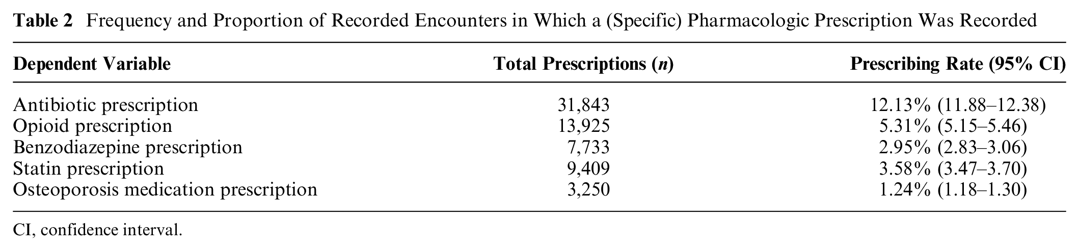 Frequency and Proportion of Recorded Encounters in Which a (Specific) Pharmacologic Prescription Was Recorded