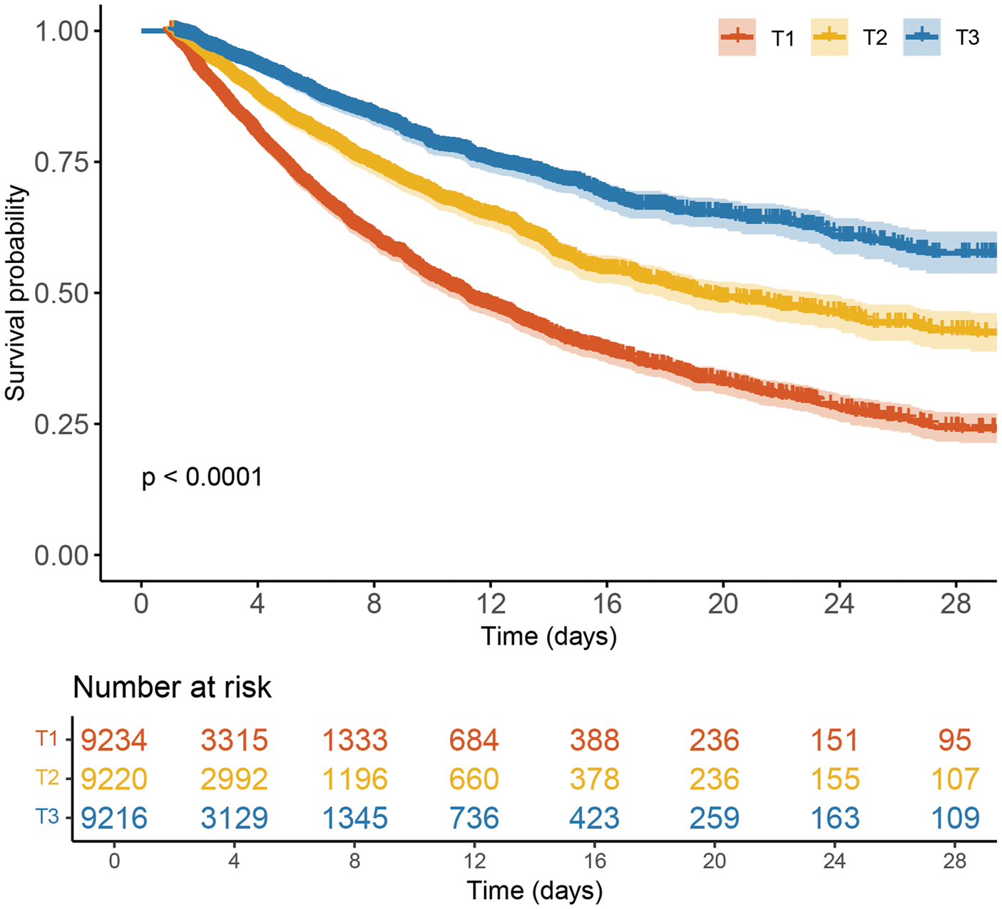 Kaplan–Meier survival curves for 28-day all-cause mortality.