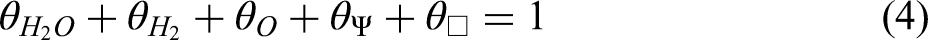 In other words, at low water vapour content, hydrogen diffuses easily into the pellets, and the reduction is primarily governed by the chemical reaction. However, increasing the water vapour content or lowering the temperature makes diffusion more difficult. As previously mentioned, higher water vapour reduces the concentration gradient, which drives diffusion. Further increases in water vapour also hinder the chemical reaction by blocking active sites at the reaction interface.8,36 The surface of wüstite is regarded as having a finite number of sites available for occupation by hydrogen and water vapour. Additionally, water vapour can be dissociated into oxygen ions and hydrogen at the wüstite surface, as per reaction (3). Consequently, alongside water vapour and hydrogen, the oxygen generated from reaction (3) can be adsorbed onto the surface sites of wüstite.