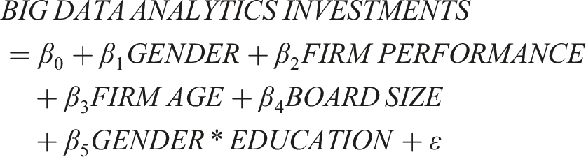 In testing the study's hypotheses, the multiple linear regression analysis uses big data analytics investments as the dependent variable and gender diversity as the independent variable. Education diversity is moderating variable. The firm performance, firm age and board size are control variables.