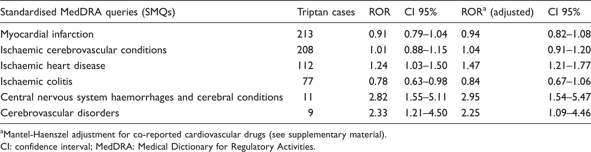 aMantel-Haenszel adjustment for co-reported cardiovascular drugs (see supplementary material). CI: confidence interval; MedDRA: Medical Dictionary for Regulatory Activities.