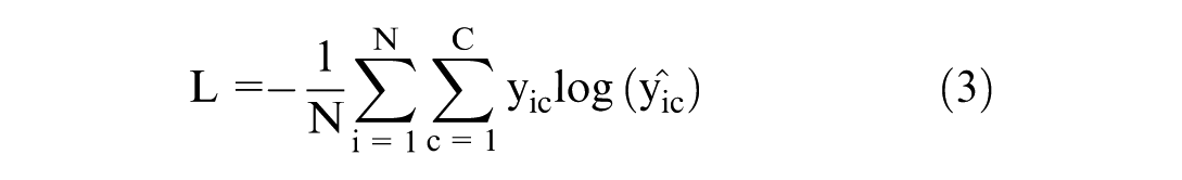 In this study, the performance of the fusion model was evaluated using different feature sets. Model training and testing were achieved using an Alienware m16 R1 system equipped with NVIDIA GeForce RTX 4080 GPU (12 GB VRAM) and CUDA 12.6 support. The data set was divided into training, validation, and test sets with a split ratio of 70% for training, 15% for validation, and 15% for testing. All localized images were resized to 224×224 pixels to ensure consistency in input dimensions. The loss function used for training was cross-entropy loss, which is suitable for multiclass classification tasks as it measures the performance of a classification model whose output is a probability value between 0 and 1. As shown in Equation 3, cross-entropy loss penalizes the deviation of the predicted probability from the true class label, thus effectively guiding the optimization process. The formula for cross-entropy loss is given by
