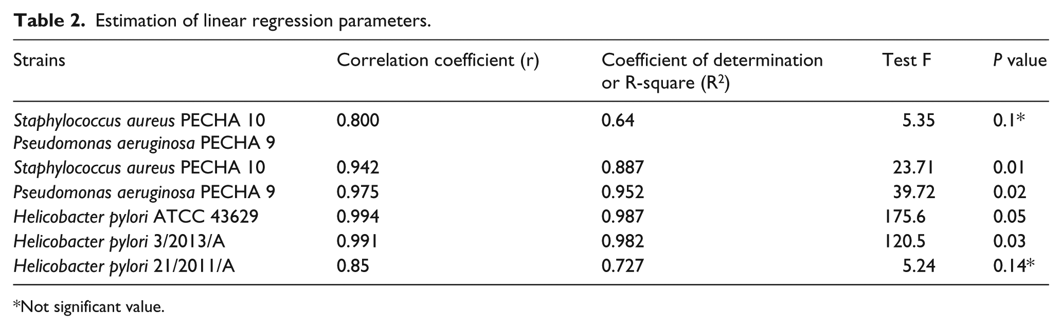 In the case of H. pylori 3/2013/A, all obtained values compared to each other, using ANOVA, were statistically significant (P = 0.03).