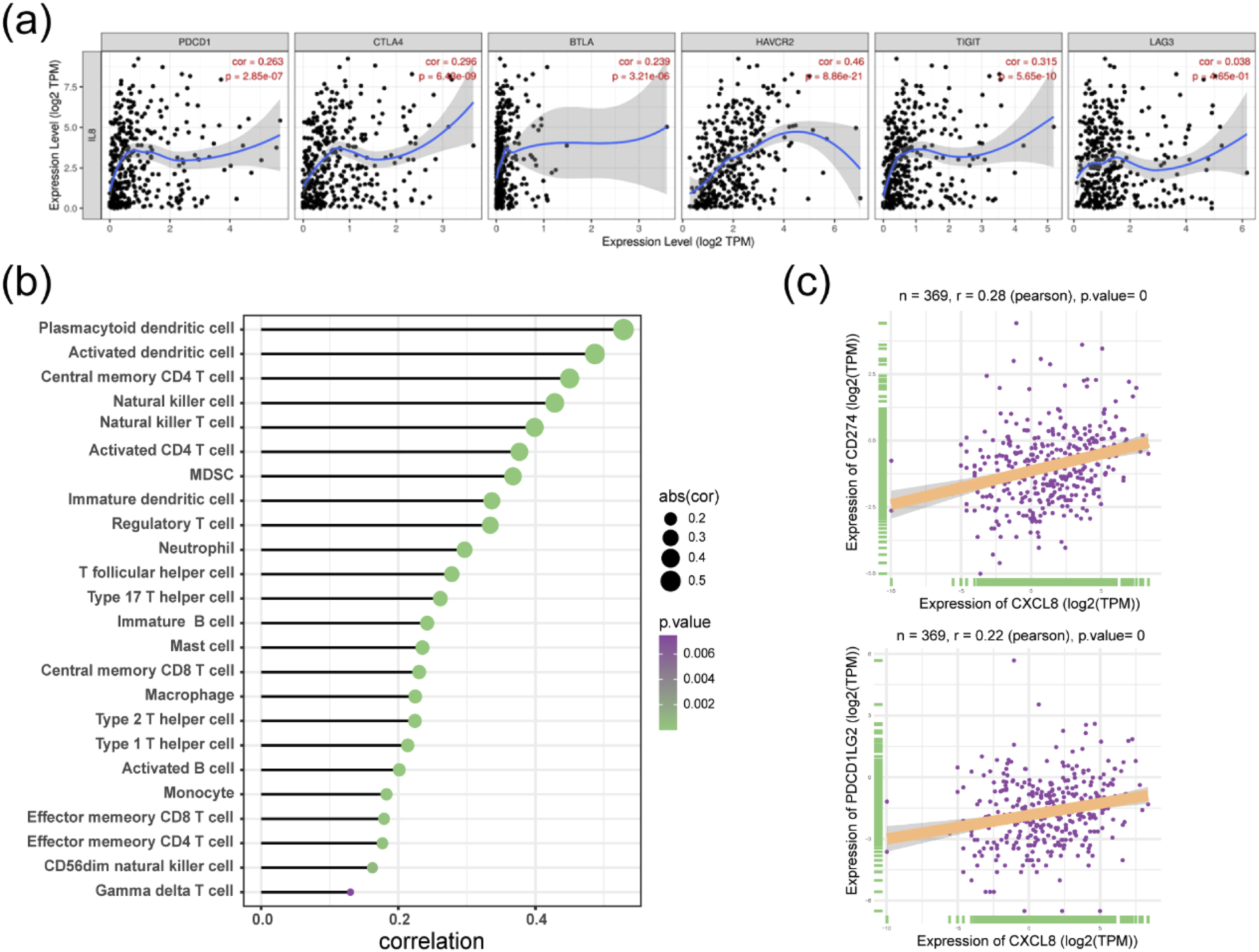 IL-8 was positively correlated with immune checkpoints