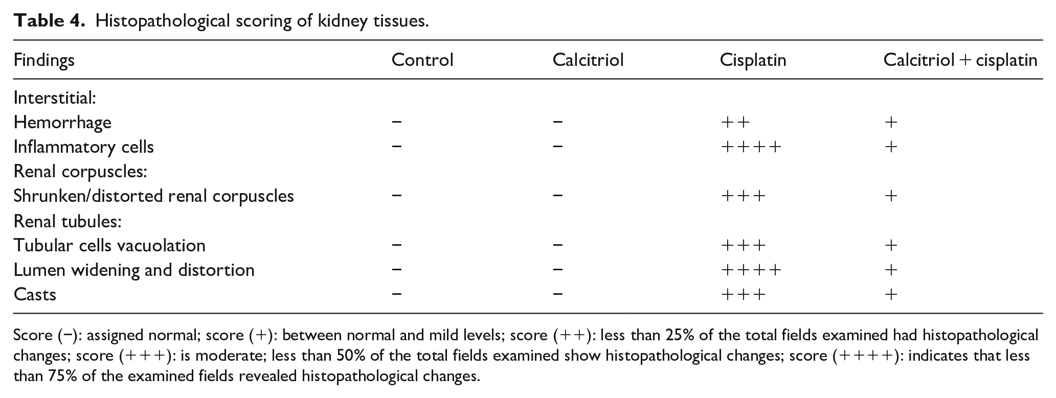 Histopathological scoring of kidney tissues.