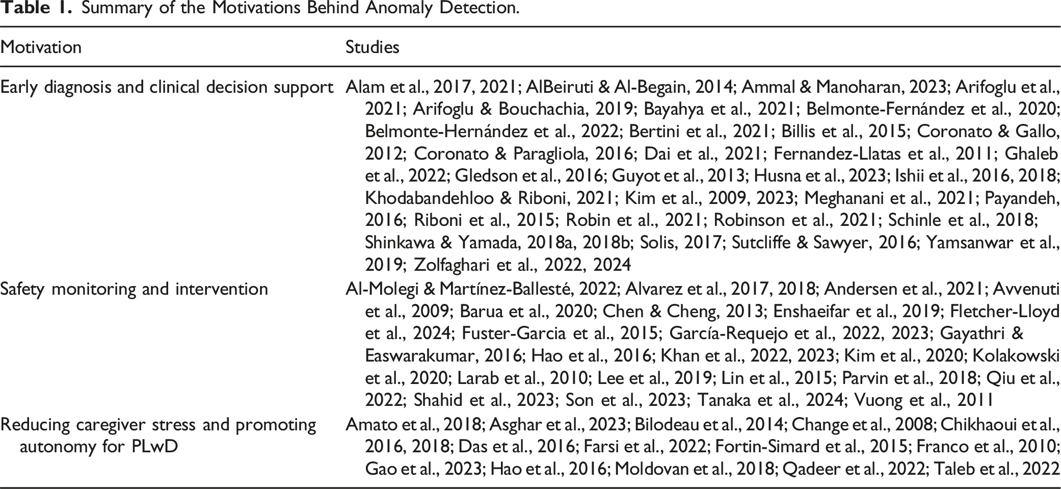 Additionally, this review contributes to an ongoing research initiative focused on advancing anomaly detection techniques for monitoring behavioral changes in PLwD. By synthesizing existing literature, it helps refine the research question and guide further investigation, ensuring that relevant advancements are considered within the study framework.